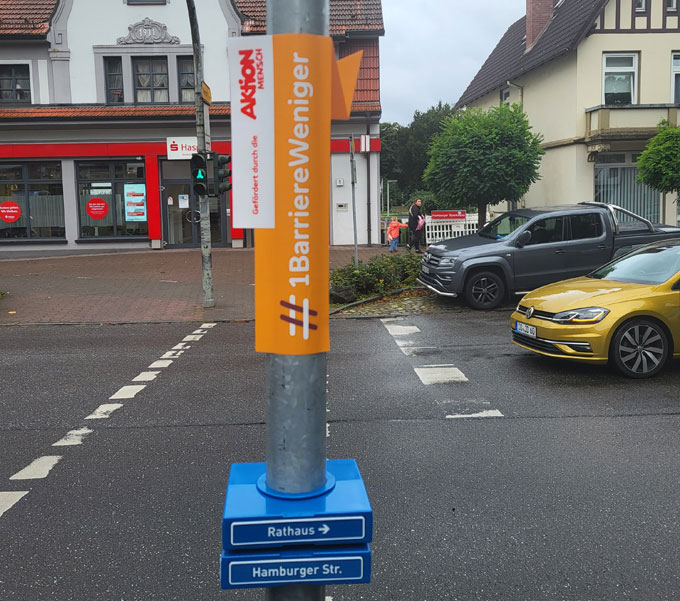 Reinbek montiert taktile (fühlbare) Straßenschilder